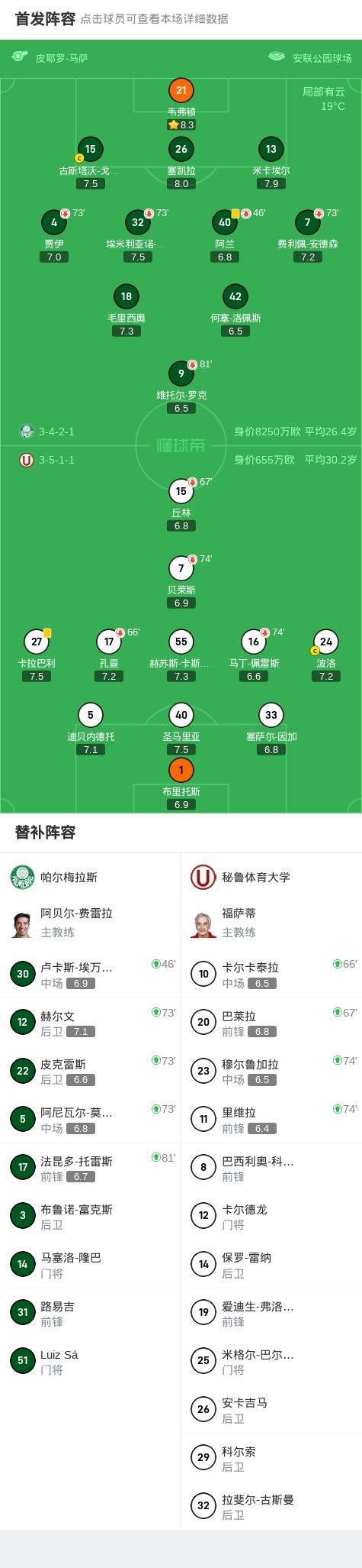 南美解放者杯1/8决赛次回合,帕尔梅拉斯对阵秘鲁体育大学的比赛在常规时间内以0比0握手言和。凭借此前建立的优势,帕尔梅拉斯以总比分4比0淘汰对手,顺利晋级下一轮赛事。